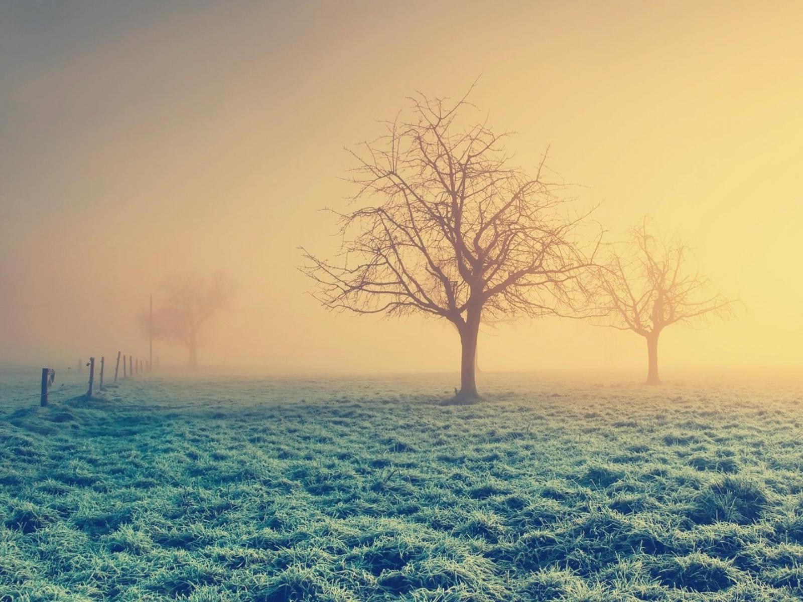 Wallpaper Landscape, Fog, crow