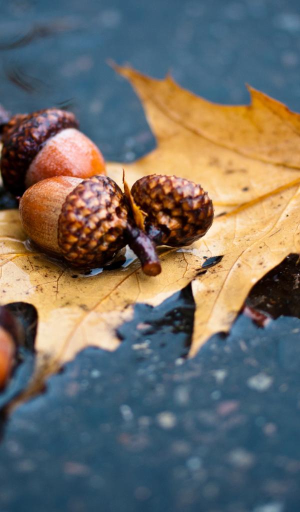 Wallpaper Leaves, Water, acorn, Oak, Autumn leaves
