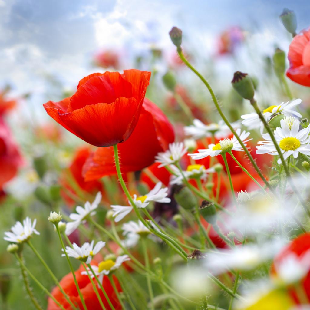 Wallpaper Daisies, White daisies, Summertime, Cloudy sky, July
