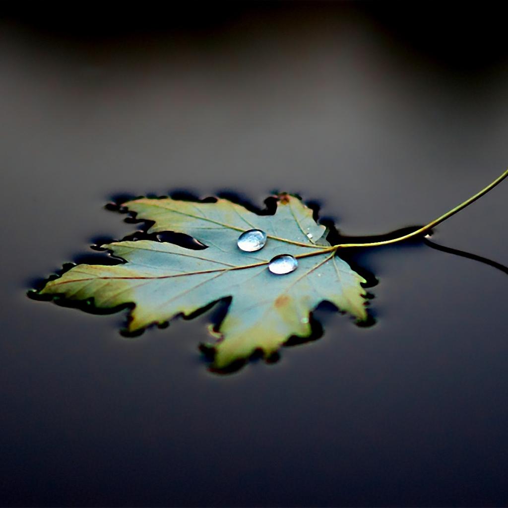 Wallpaper Drops, Black background, Water, Reflection, leaf