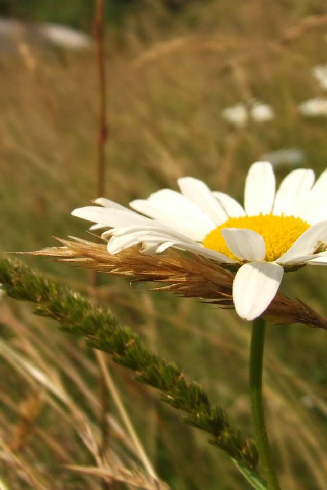 Wallpaper White daisies, Green grass, Daisy petals, ear, July