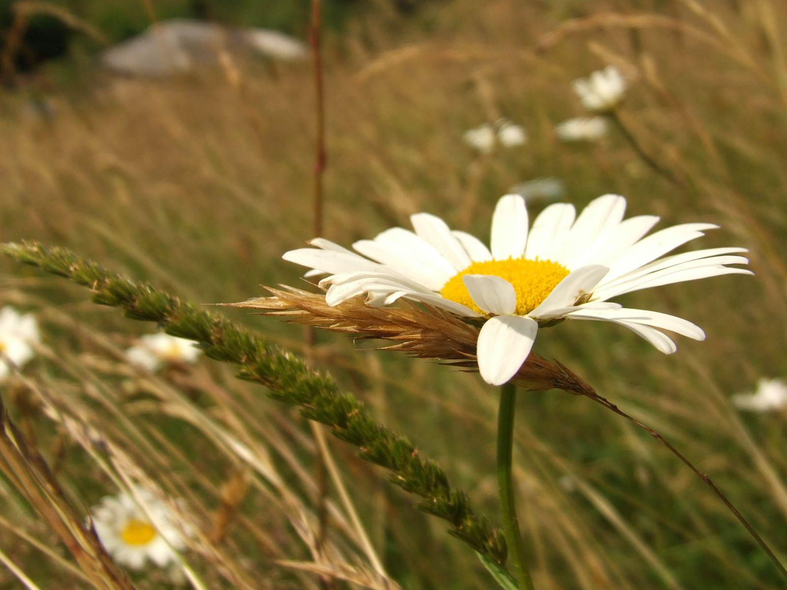 Wallpaper White daisies, Green grass, Daisy petals, ear, July