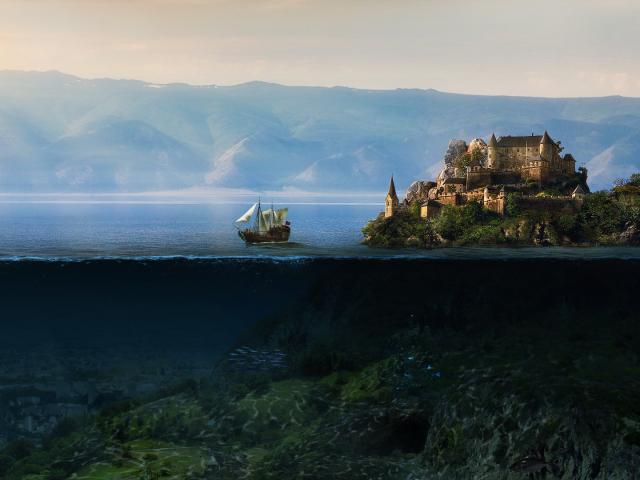 Wallpaper Ocean, Castle, Water, Boat, church