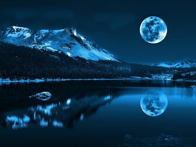 Wallpaper Night, Landscape, Water, Moon