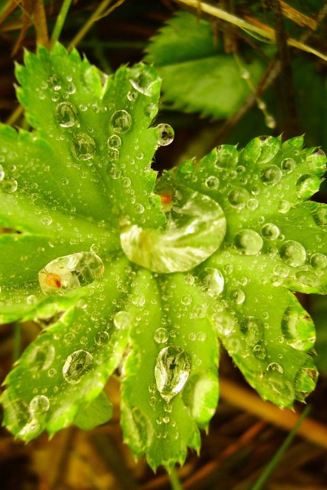 Wallpaper Leaves, Morning, Dew grass, Macro