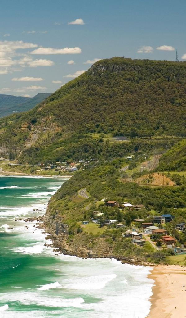Wallpaper Covered with green mountain slopes near the sea