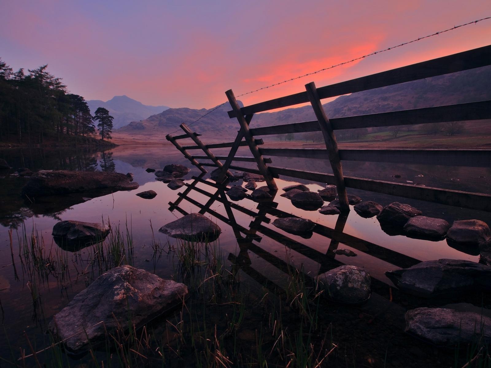 Wallpaper Dilapidated fence near the water