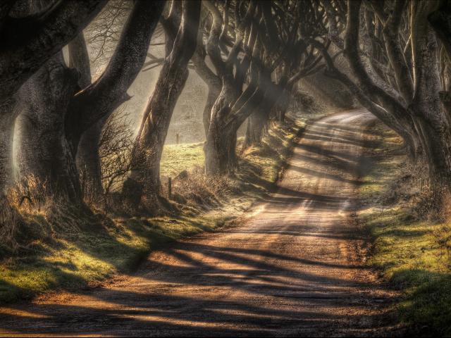 » Wallpaper Road surrounded by old trees