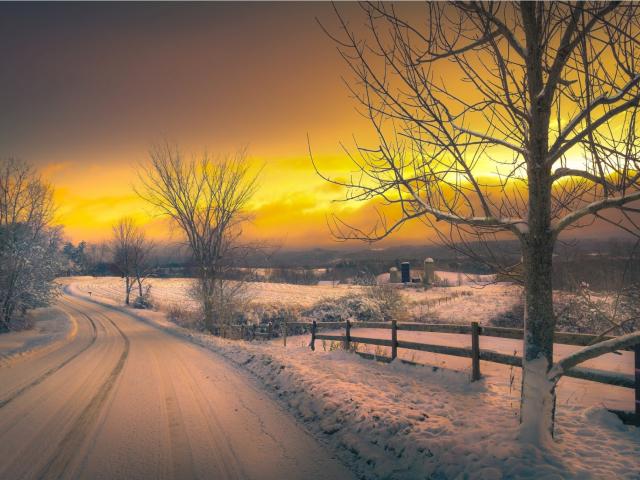 Wallpaper Winter road at sunset