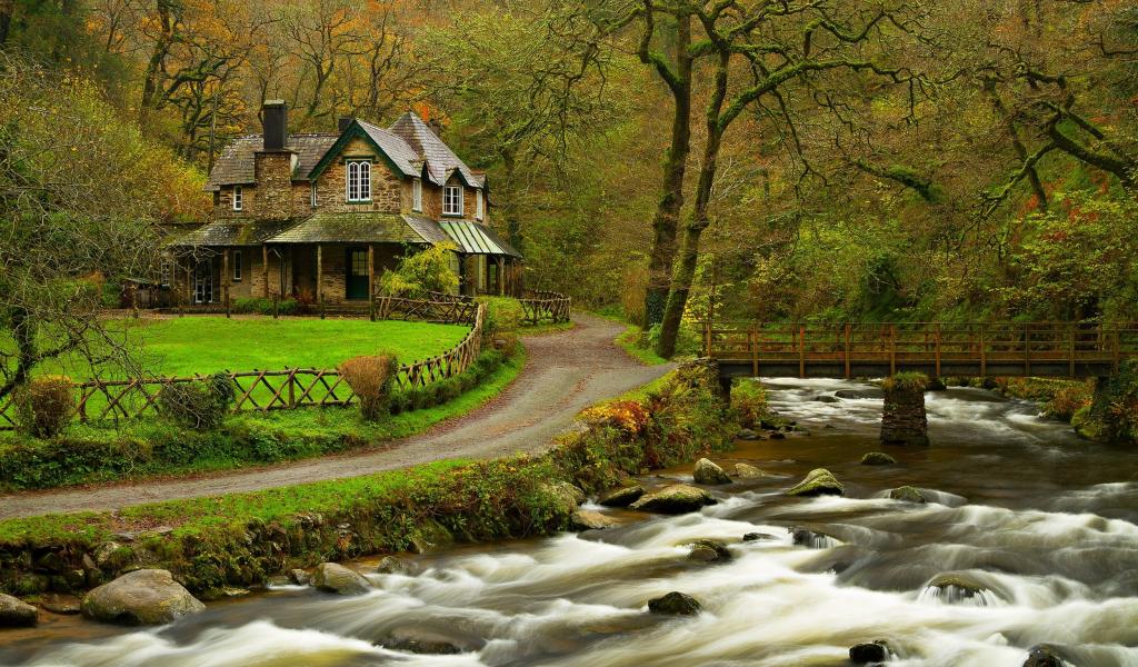 Wallpaper Little House on the banks of the River Forest
