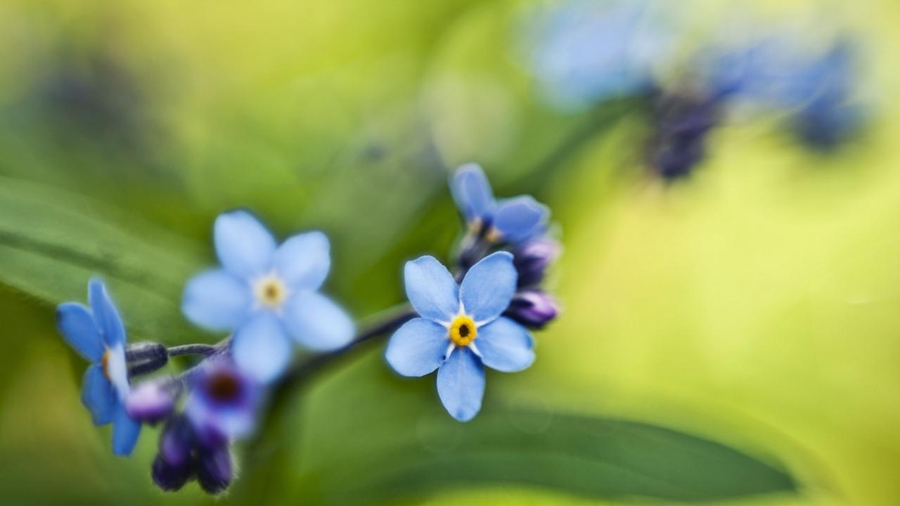 Wallpaper Me-nots on green leaf