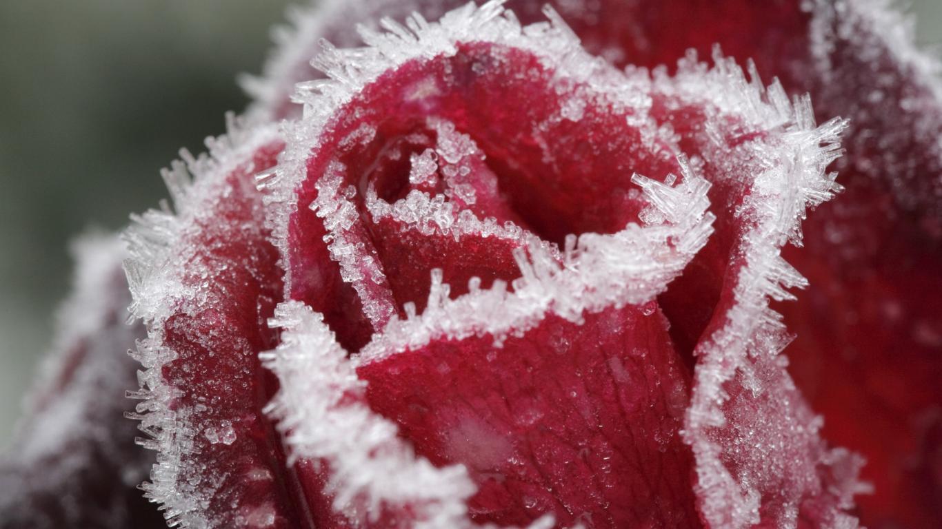 Wallpaper Hoarfrost on rose petals