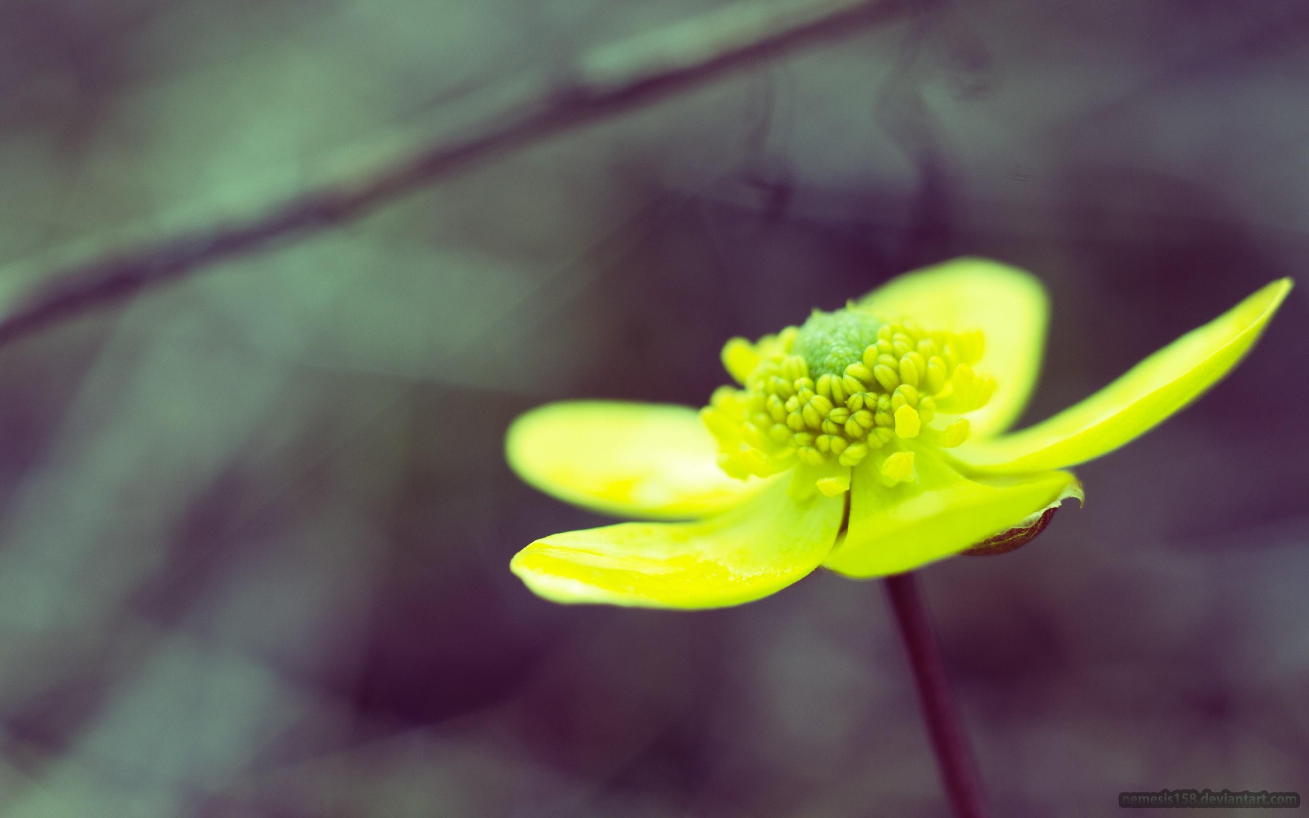 Wallpaper Yellowish green flower on a gray background