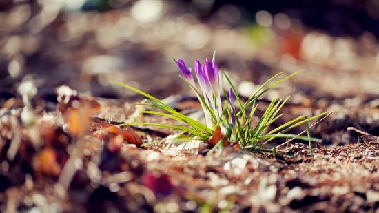 Wallpaper A small purple flower on the ground