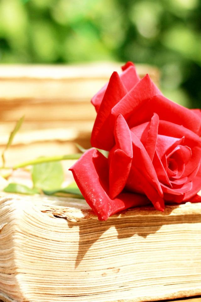 Wallpaper Leaves, Red rose, rose Petals, violin, notes