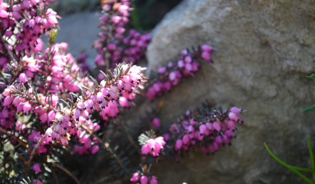 Wallpaper Brush of pink flowers at the stone