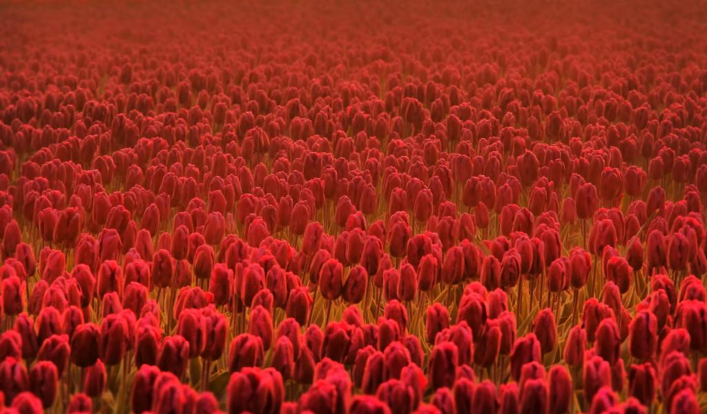 Wallpaper Field of red tulips in the haze