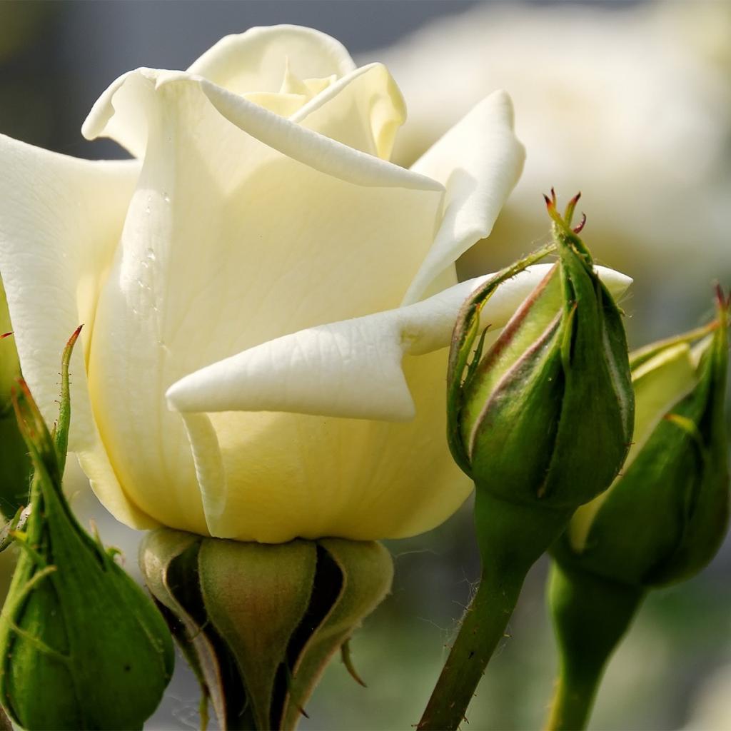 Wallpaper White rose between green buds