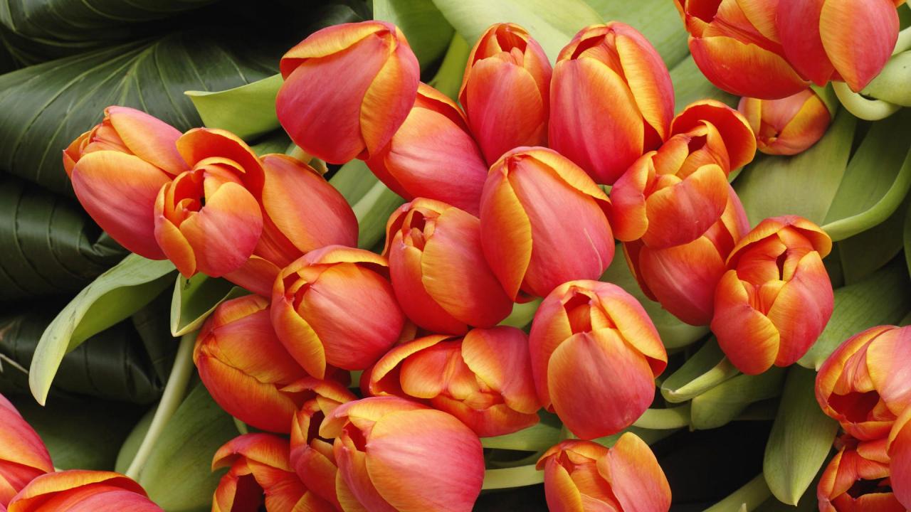Wallpaper Red and yellow tulips