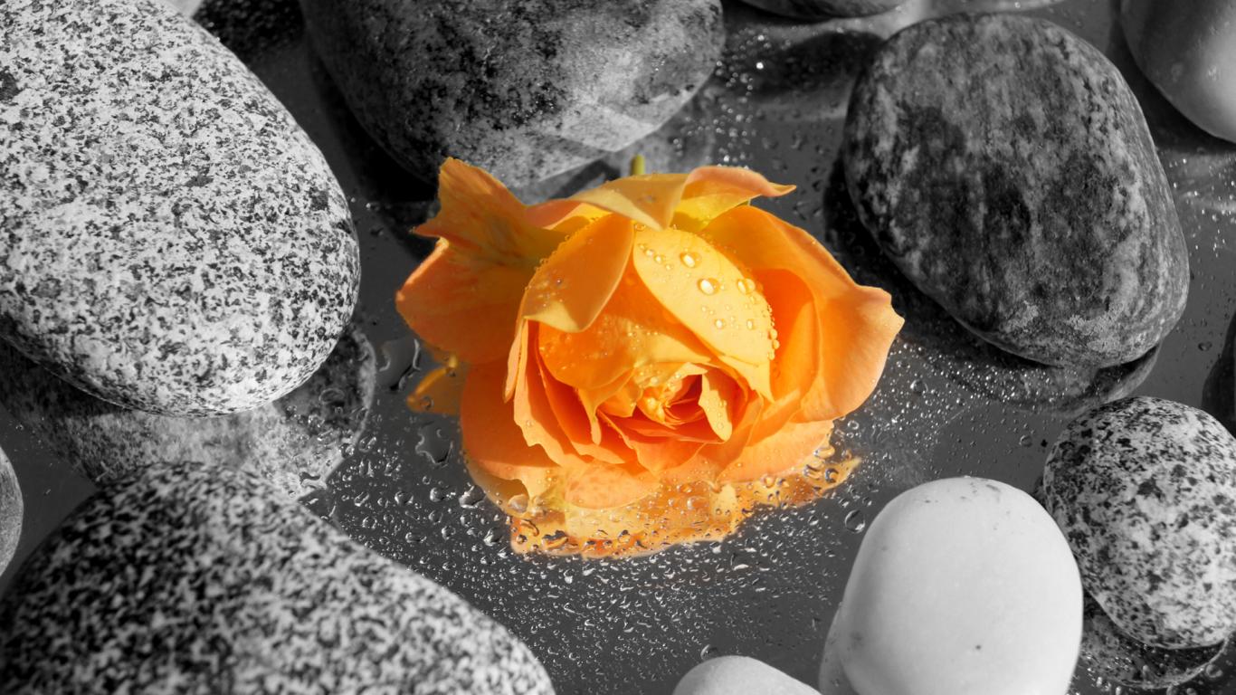Wallpaper Yellow rose bud in stones