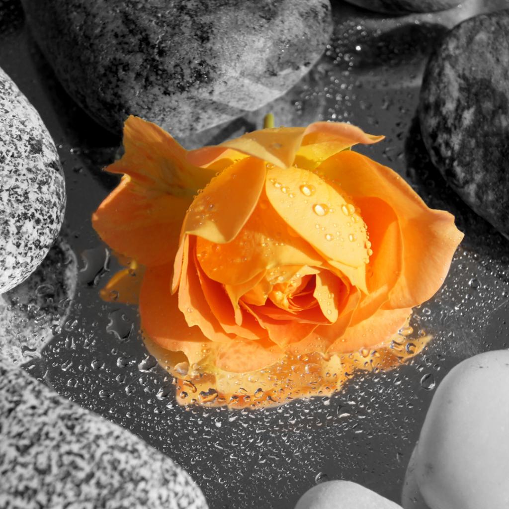 Wallpaper Yellow rose bud in stones