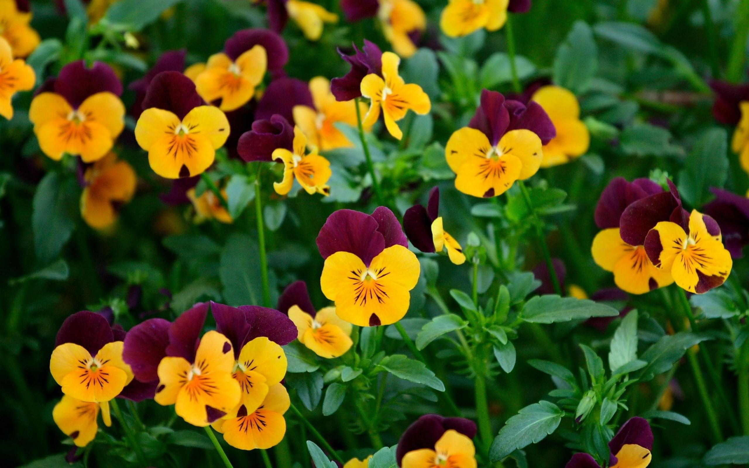 Wallpaper Yellow and maroon pansy flowers