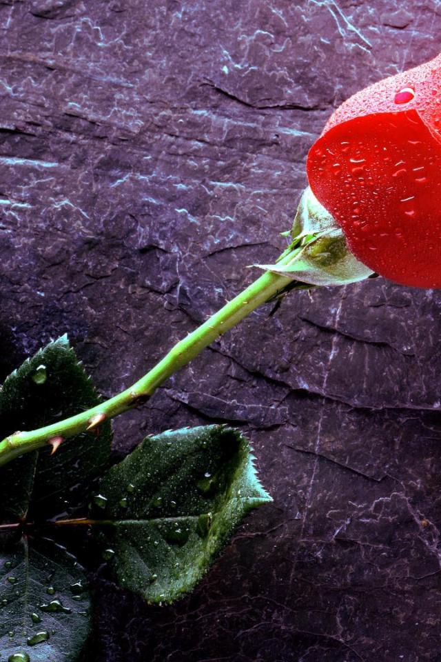 Wallpaper Wet rose on black stone