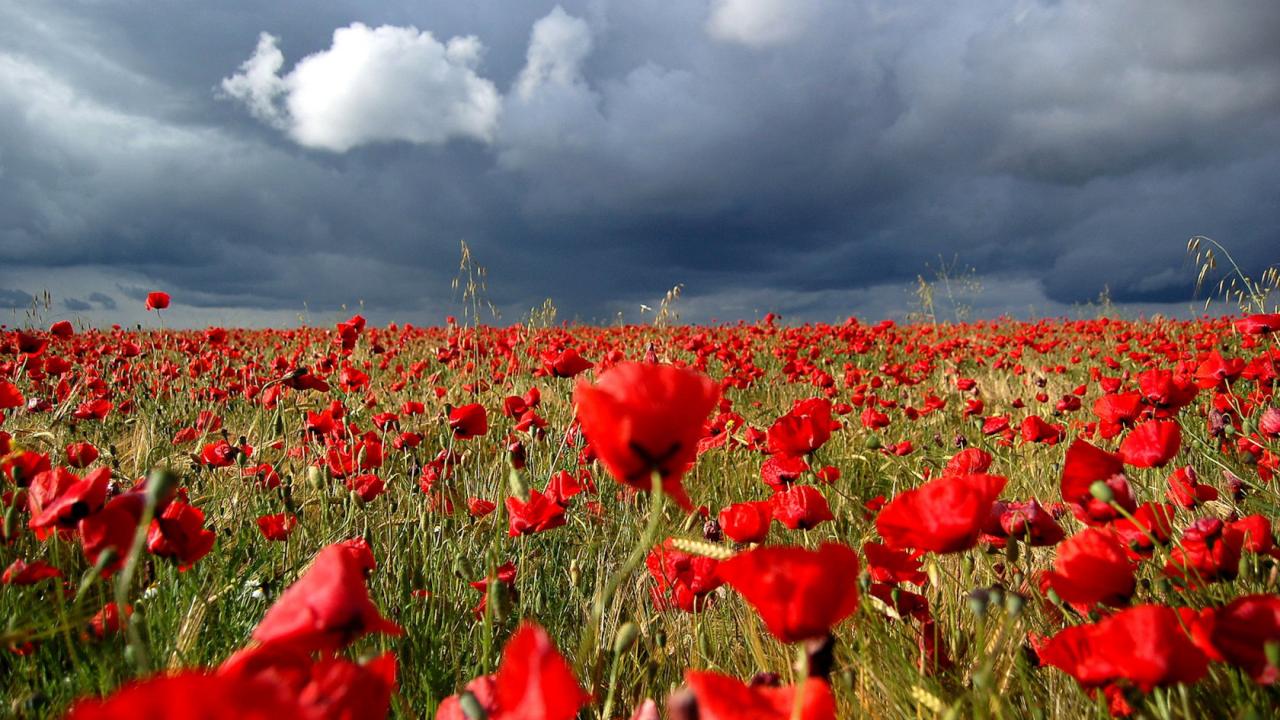 Wallpaper Poppy field under the clouds