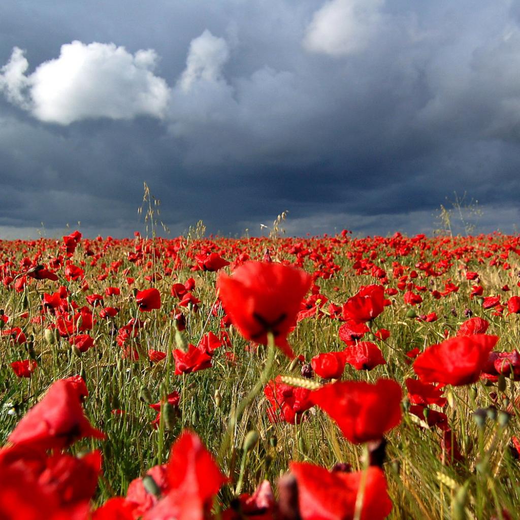 Wallpaper Poppy field under the clouds