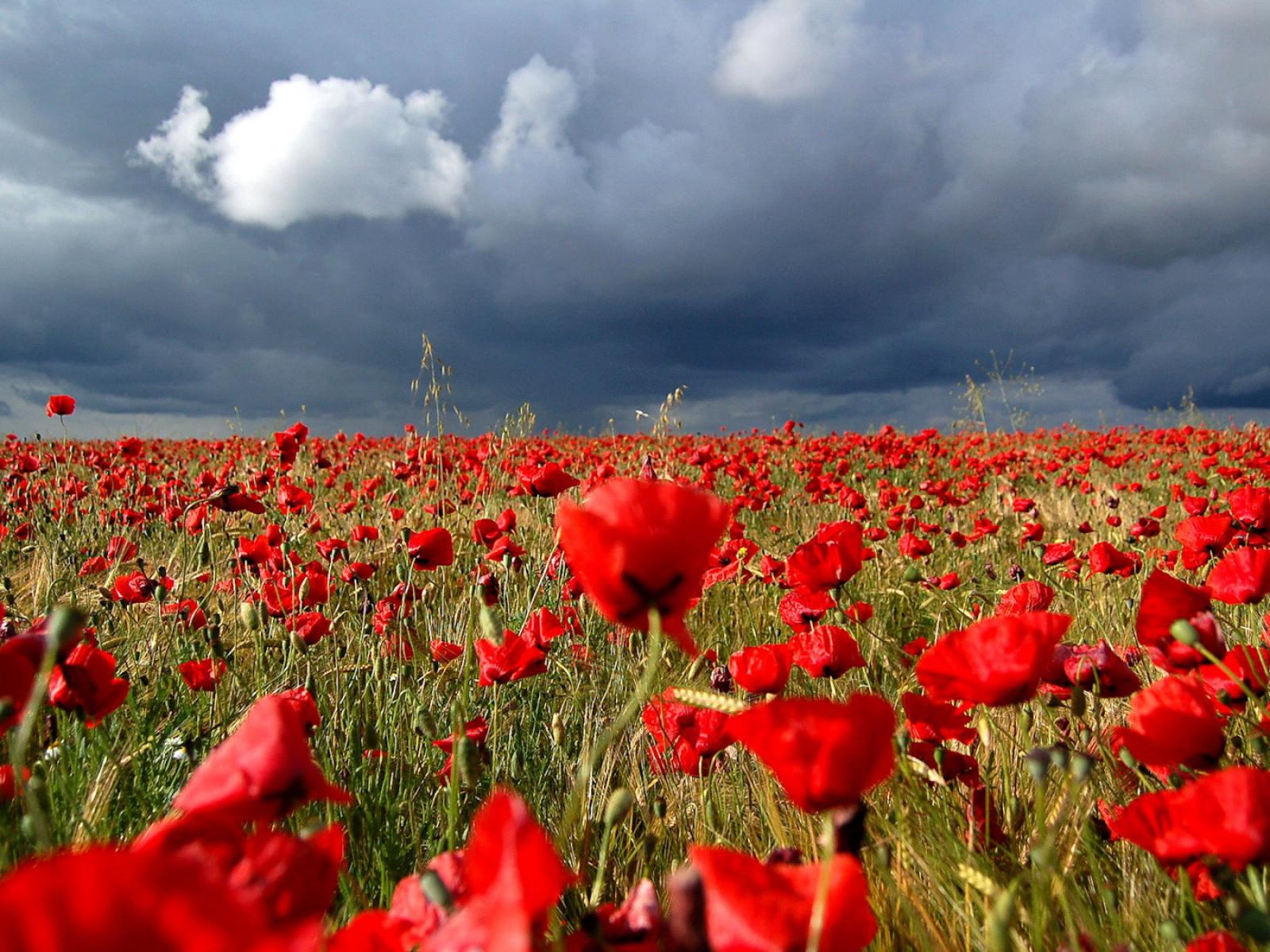 Wallpaper Poppy field under the clouds