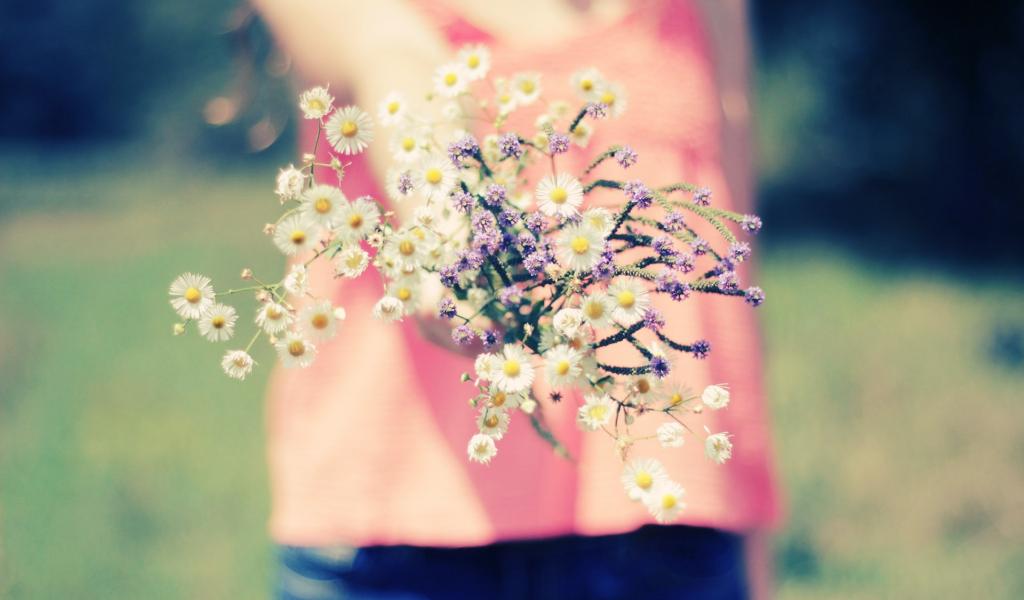Wallpaper Girl with bouquet of flowers