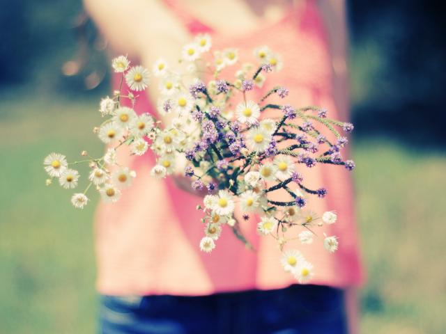 Wallpaper Girl with bouquet of flowers