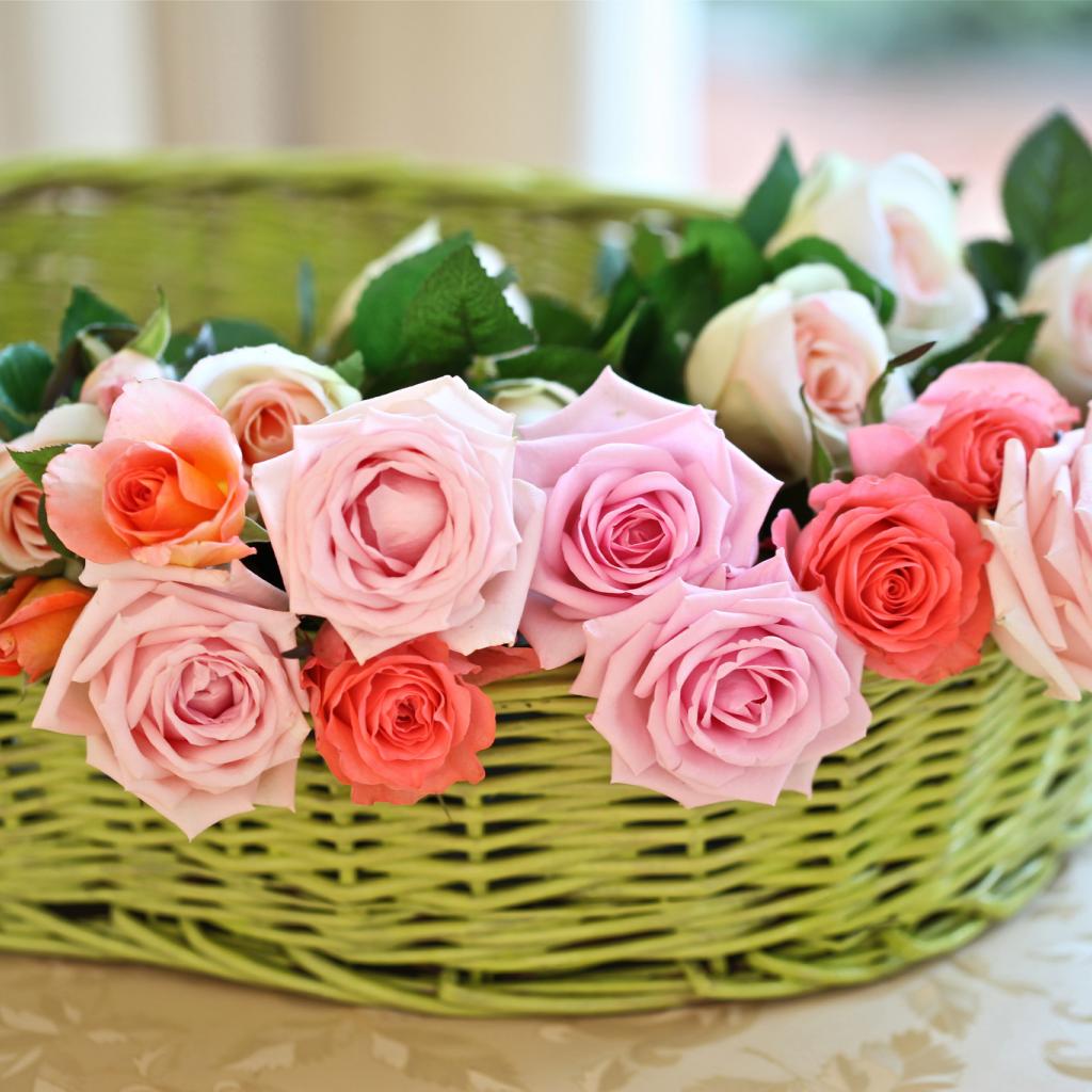 Wallpaper Red roses in a basket as a gift to women on March 8