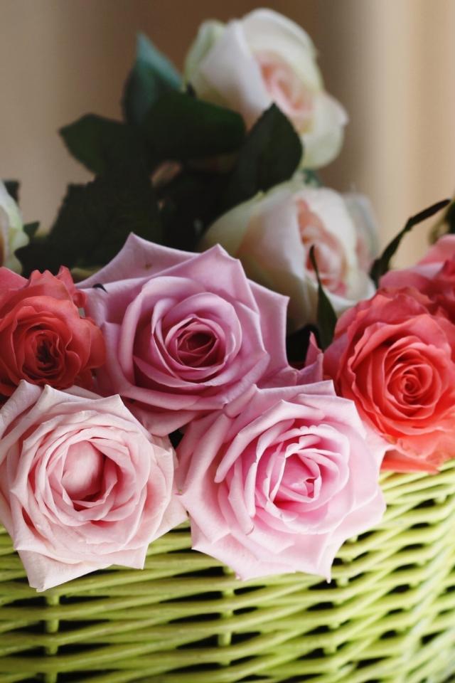 Wallpaper Bouquet of red roses on March 8 in a basket