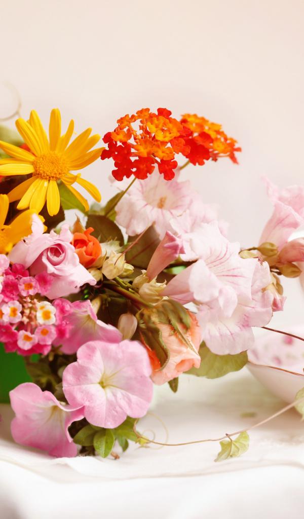 Wallpaper A bouquet of flowers on a napkin