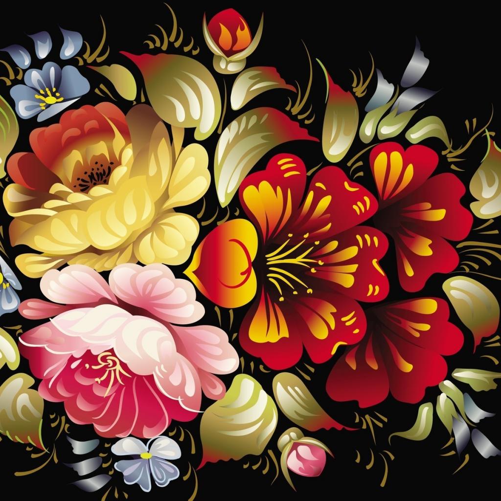 Wallpaper Flowers on black background
