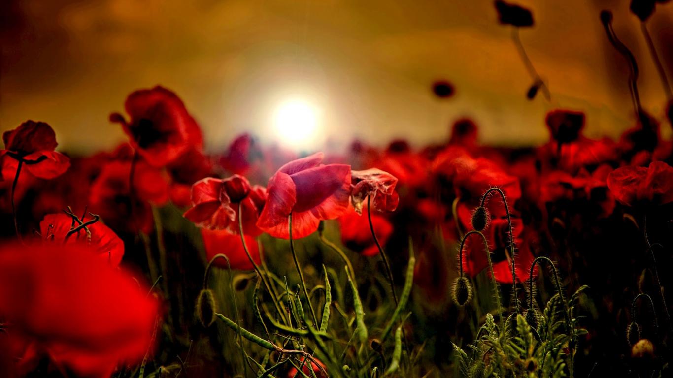 Wallpaper Sunset on a poppy field
