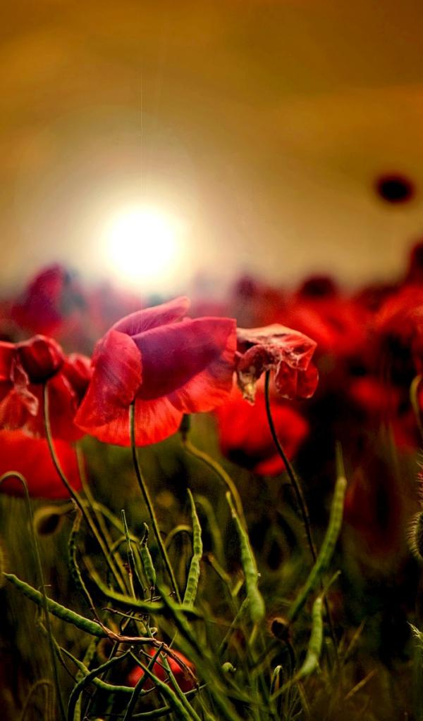 Wallpaper Sunset on a poppy field