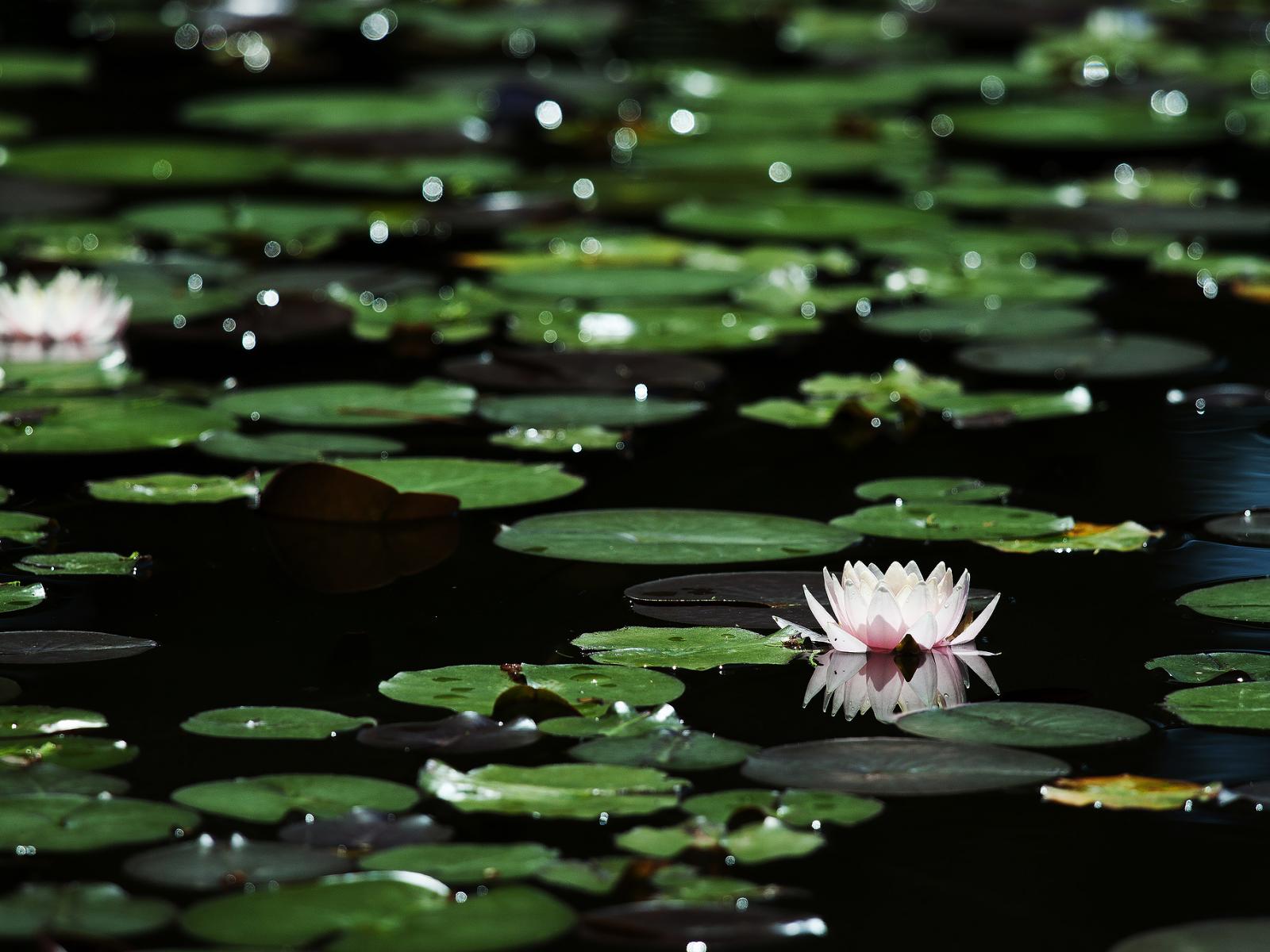 Wallpaper Lilies on the dark water