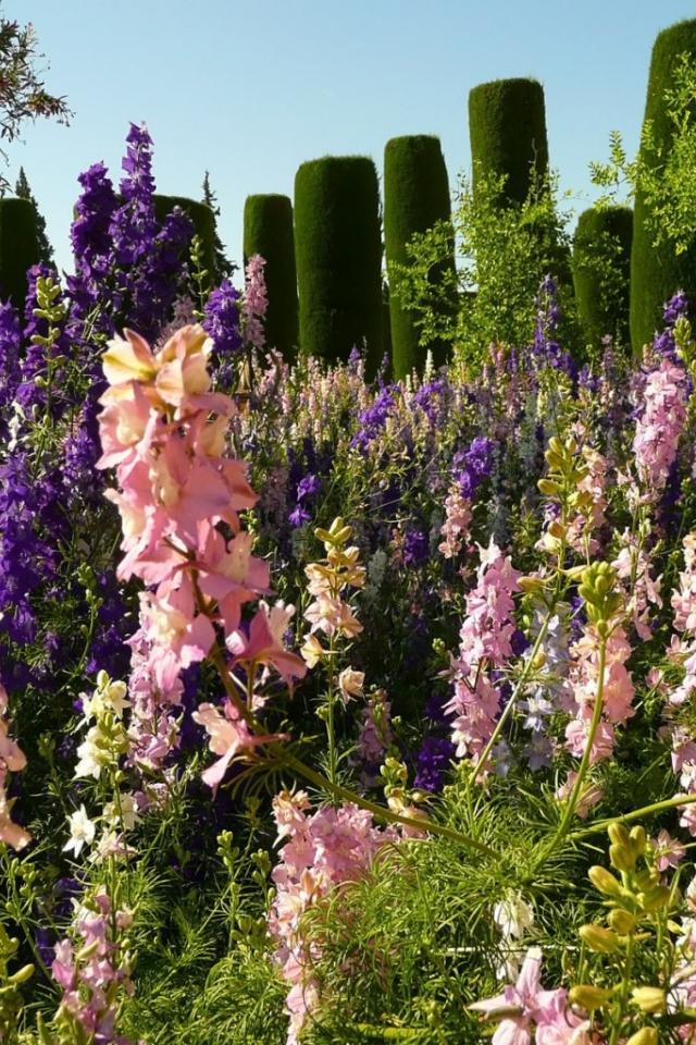 Wallpaper Beautiful gladiolus flowers in the flower bed in the garden