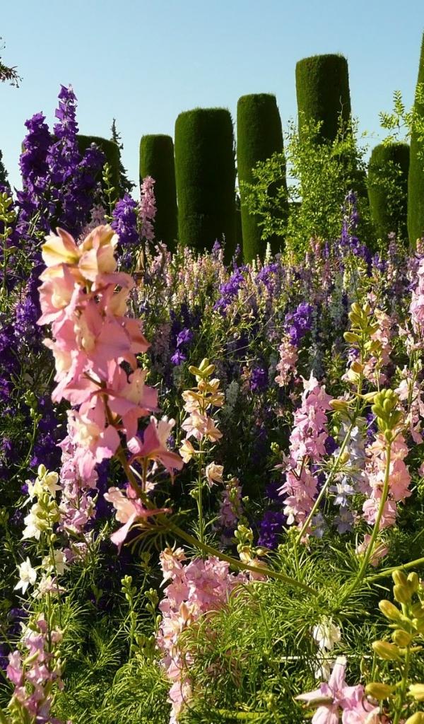 Wallpaper In the garden of beautiful flowers gladiolus