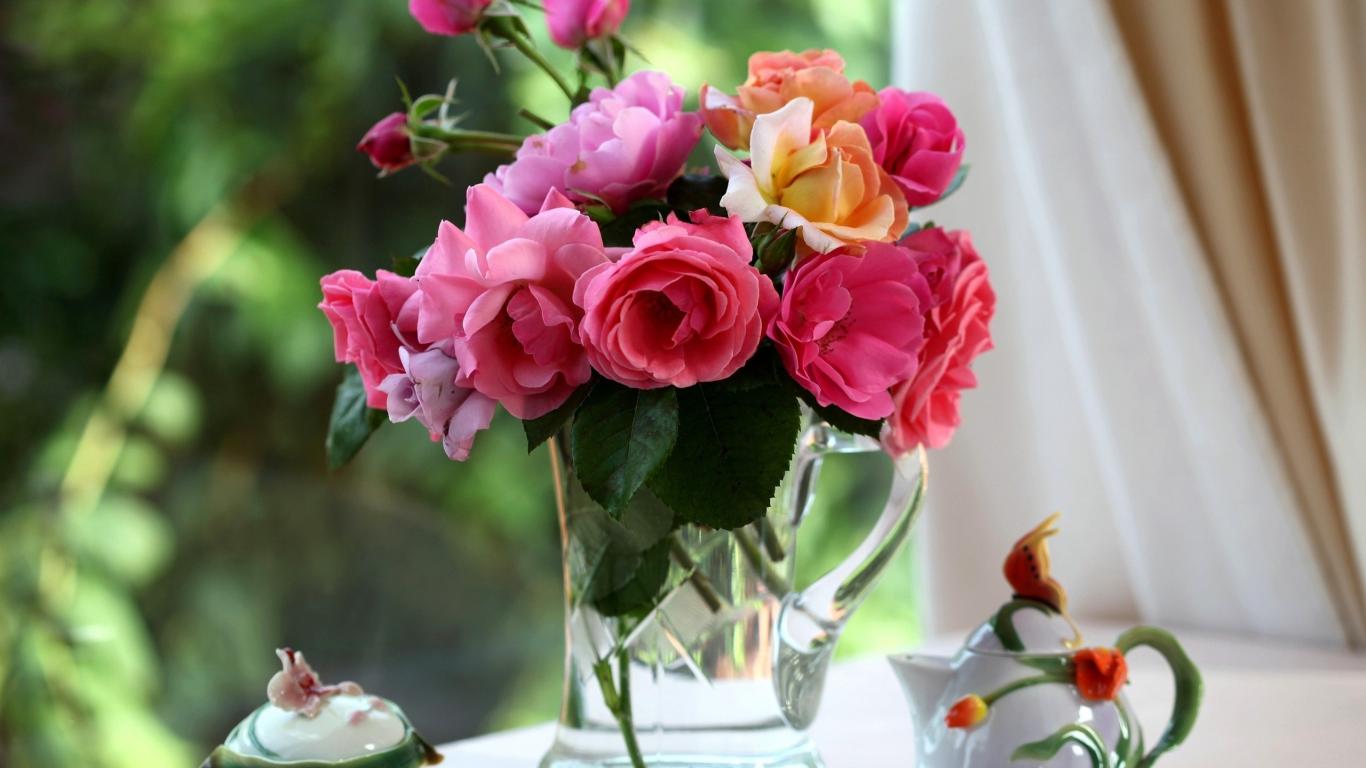 Wallpaper Bouquet of roses in a glass jug