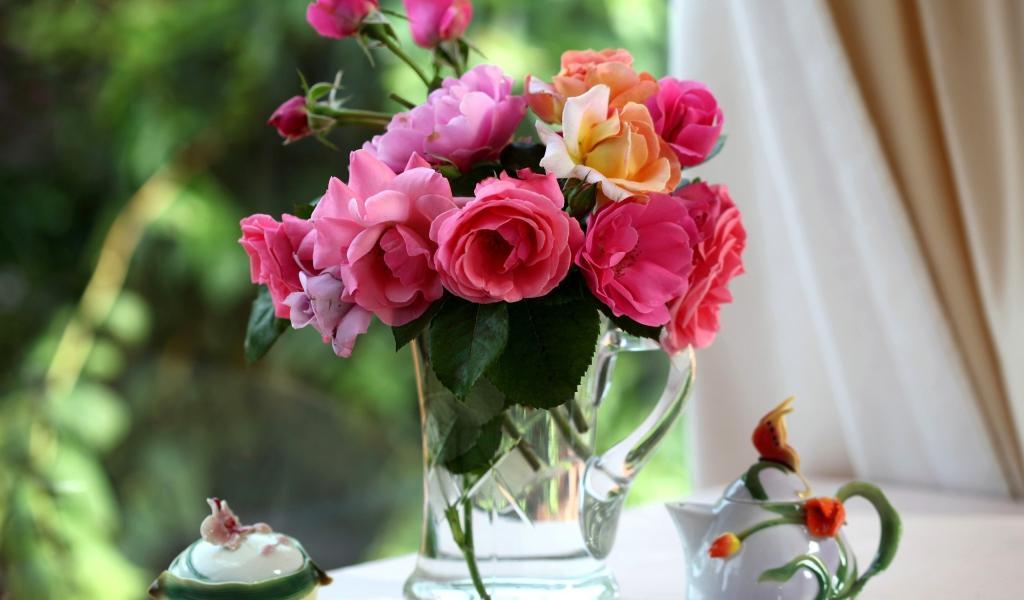 Wallpaper Bouquet of roses in a glass jug