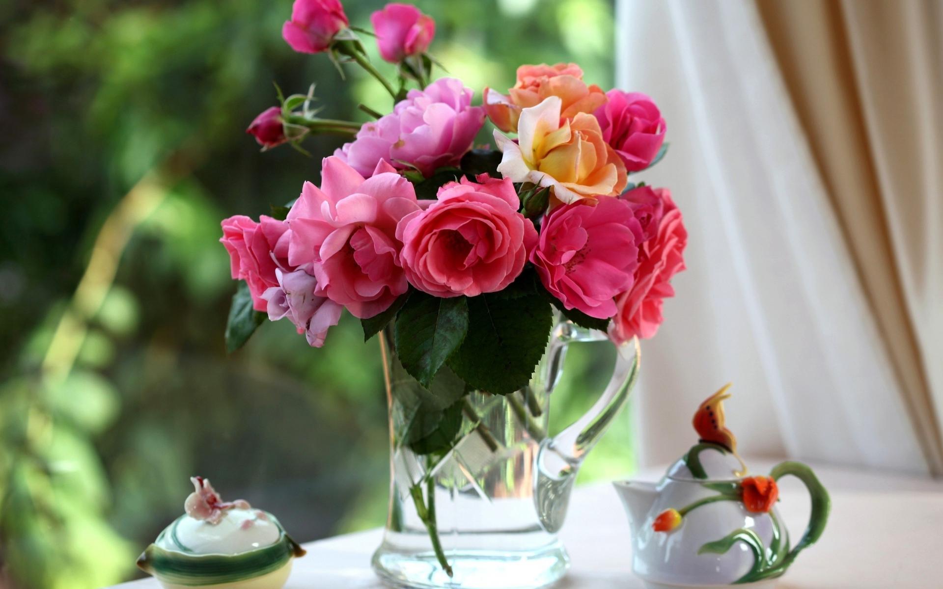 Wallpaper Bouquet of roses in a glass jug