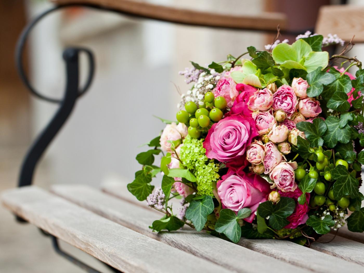 Wallpaper Beautiful bouquet on a bench