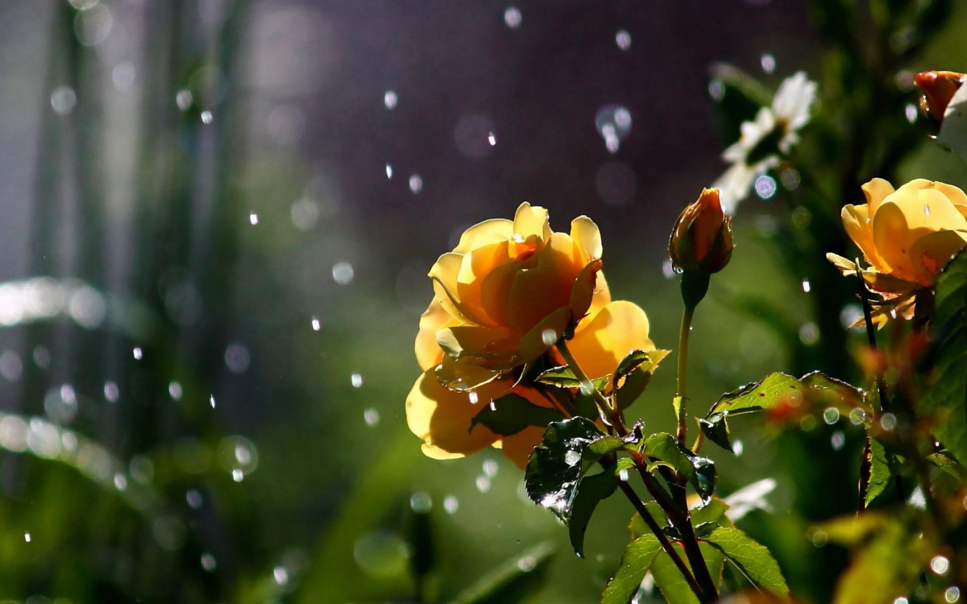 Wallpaper Yellow roses in the rain