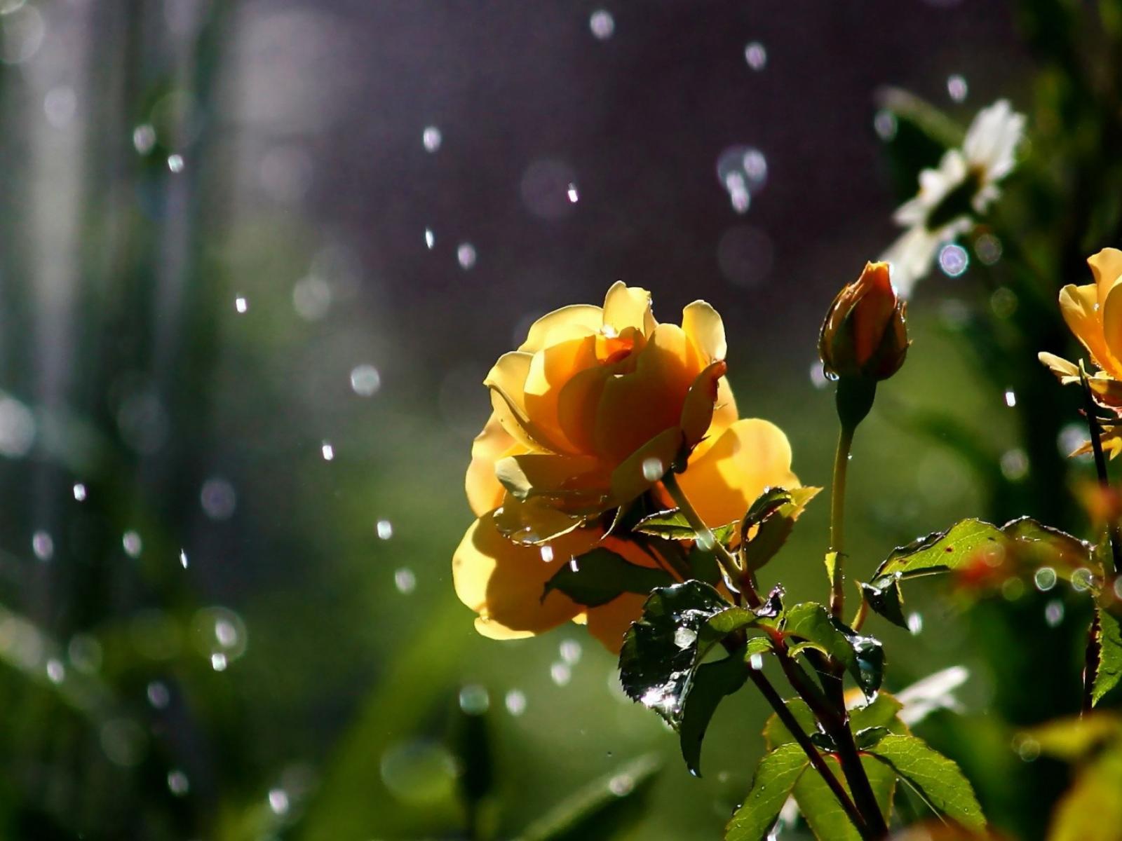 Wallpaper Yellow roses in the rain