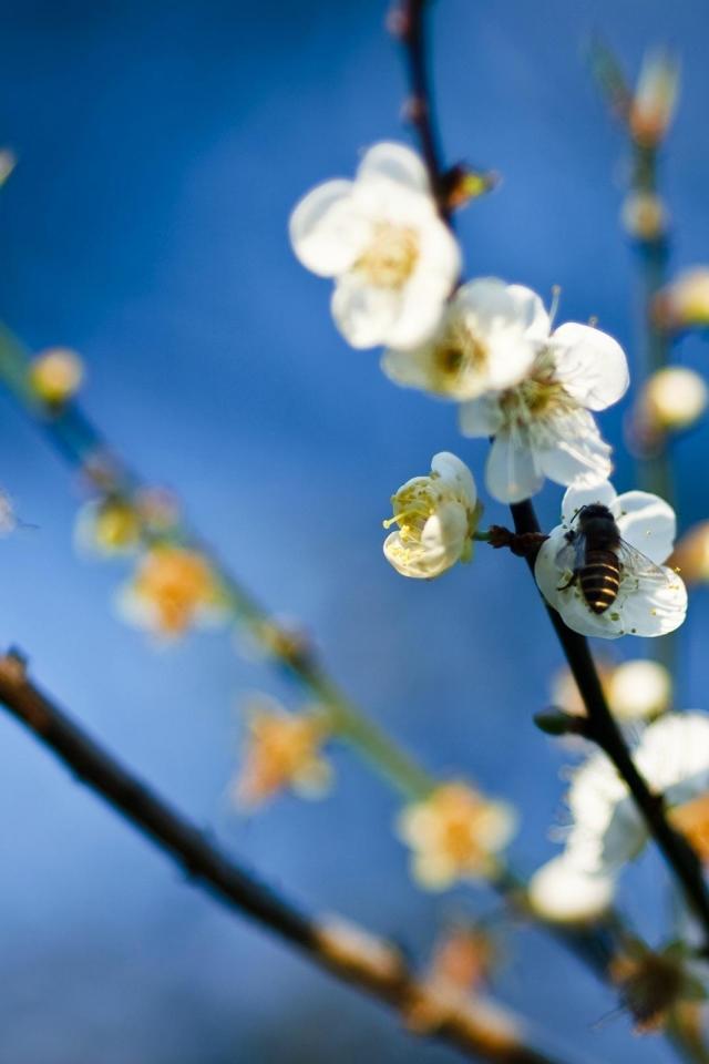 Wallpaper Bee on white flowers