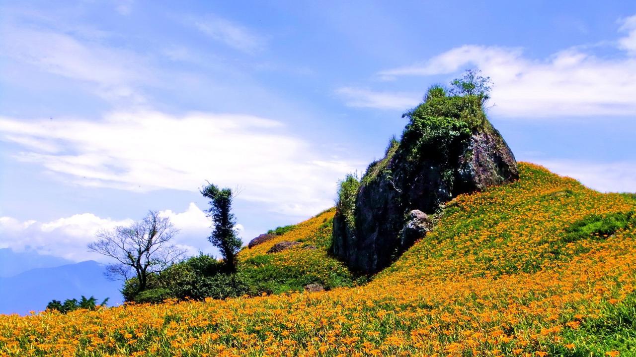 Wallpaper Mountain in orange flowers