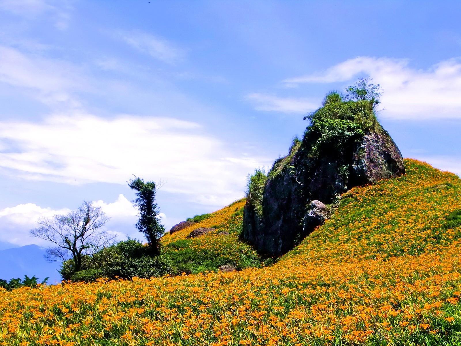 Wallpaper Mountain in orange flowers